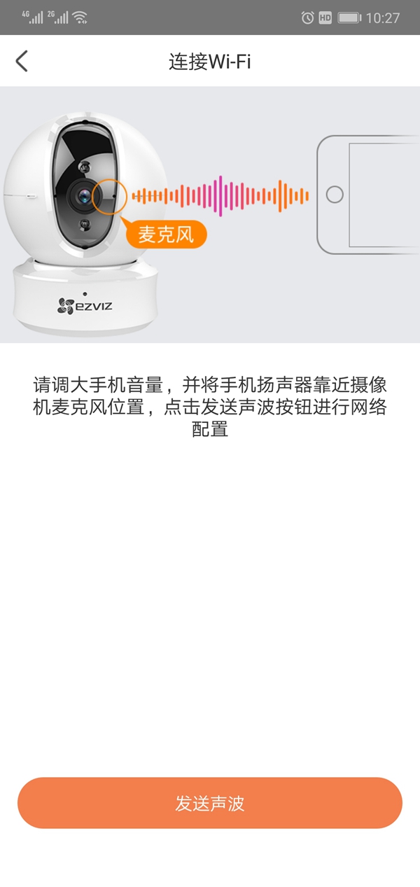 點擊“發(fā)送聲波”靠近攝像頭,設(shè)備會自動連接。如果有多個攝像頭,在攝像頭通電的狀態(tài)下,重復(fù)第三步。